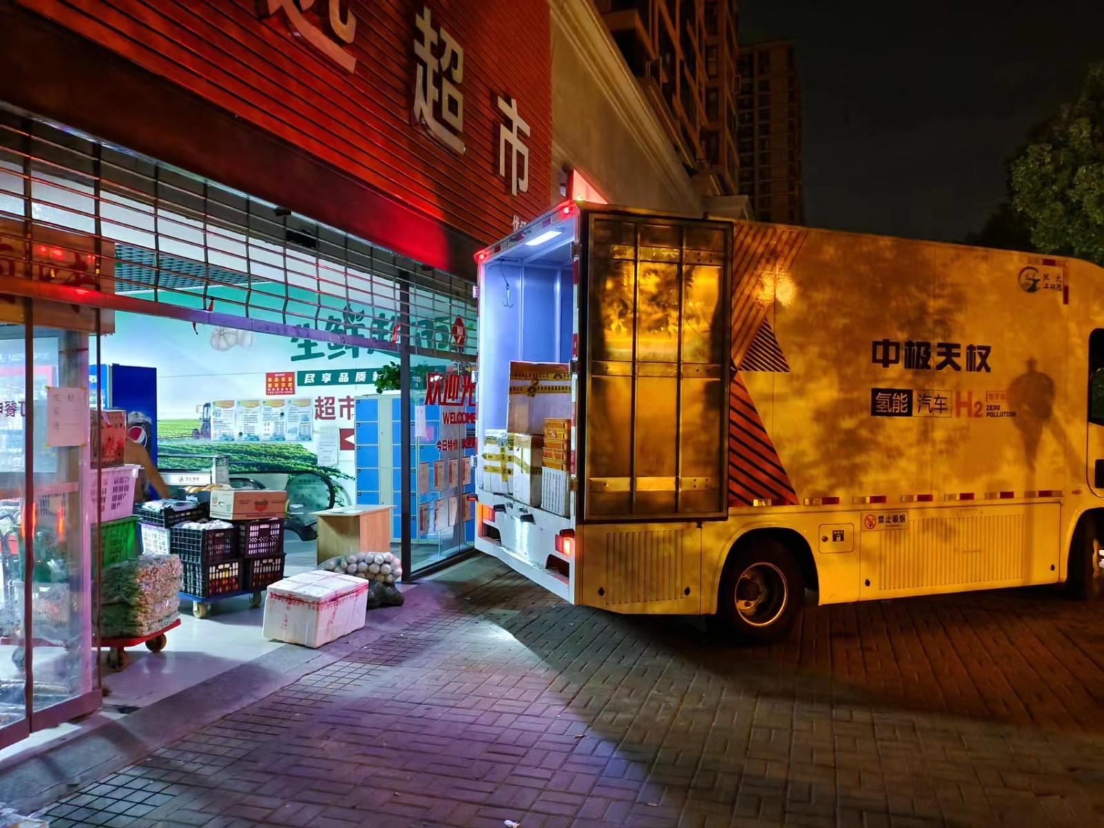 (中极天权氢燃料物流车将果蔬运到各个城市配送点)
